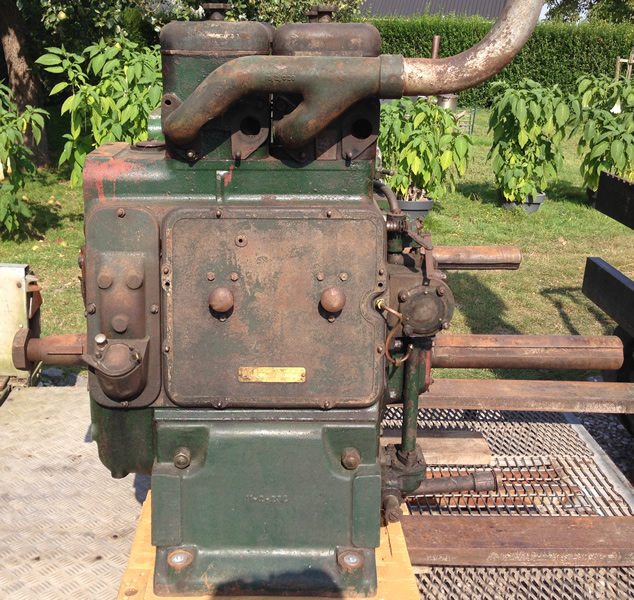 Lister JP2. 21hp @ 1200rpm, A very late example of this engine model having been produced a few years after the main production run had cease. Originally supplied by Lister's agent in Belgium and is badged to show this, the small crankcase doors normally show R.A Lister and Co Dursley, England however this engine shows its early life stating STE Lister, Landen, Belgique on its side plate.