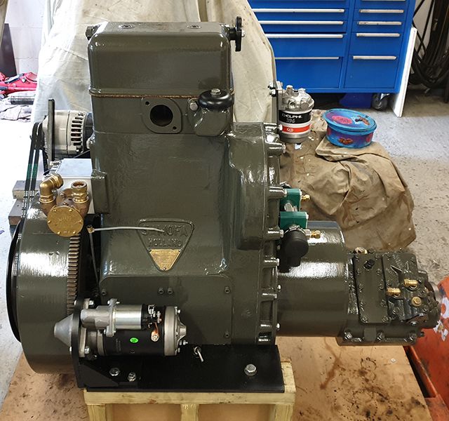 Samofa 2S108. 30hp @ 1500rpm. This engine has now been sold to grace the engine room of a new build narrowboat. It was completed with 12v electric start, 175A alternator and PRM 280 2:1 ratio gearbox.