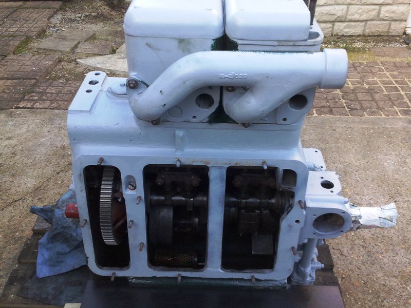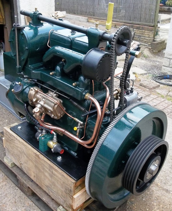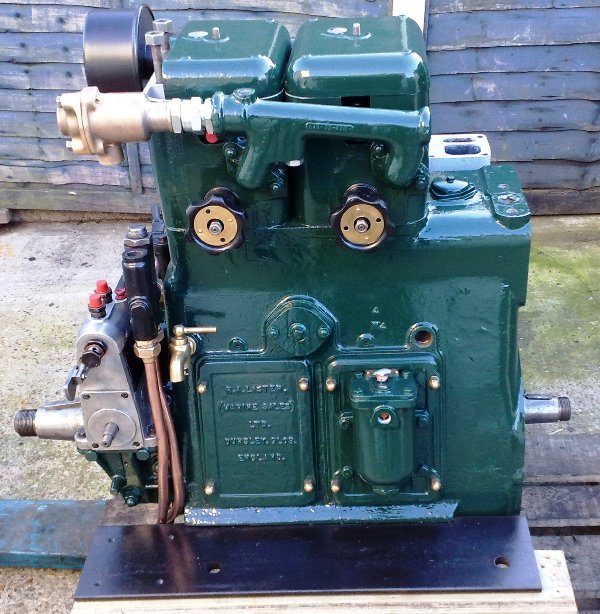 Lister JP2M. 23hp @ 1200rpm, This engine is a early example of a genuine marine unit. This engine on arrival with MPS was fitted with the orignal lister Blackstone 3:1 ratio gearbox and was raised hand start only. It was restored with a conversion to PRM 260 2:1 gearbox and electric start while still retaining the raised hand start.