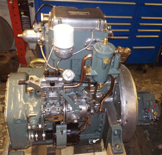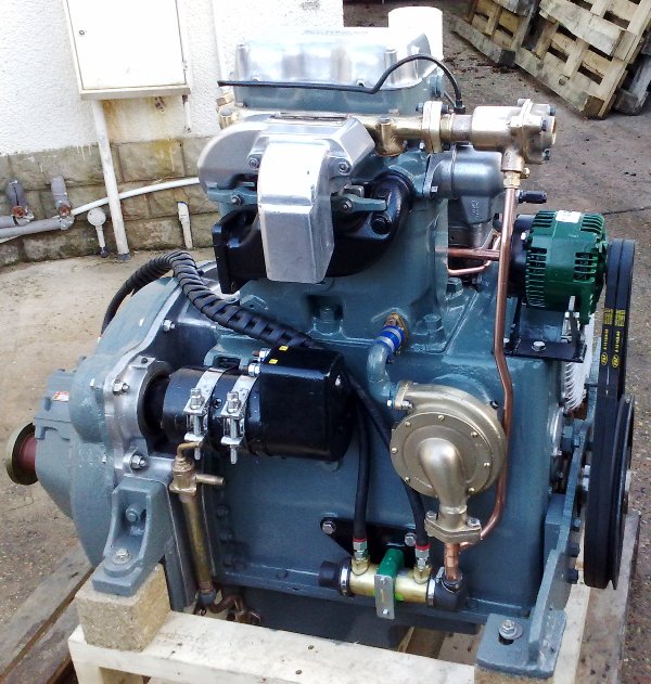 Gardner 2LW. 24hp @ 1200rpm, This engine is a genuine marine unit that had spent its life from new in a water taxi in Hong Kong. After a complete restoration of the engine it was finished off with a new PRM 260 gearbox and 24v electric start. Also 24v start bank alternator and 12v 120amp domestic alternator.