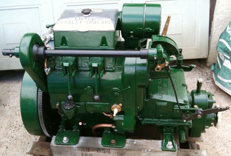 Lister FR2M. 16hp @ 1500rpm, This engine is a genuine marine unit and is complete with the orignal lister fitted blackstone 2:1 ratio gearbox and was completed with 12v electric and raised hand start. This particular engine was found on a cattle ranch in western Australia and repatriated by Marine Power Services.