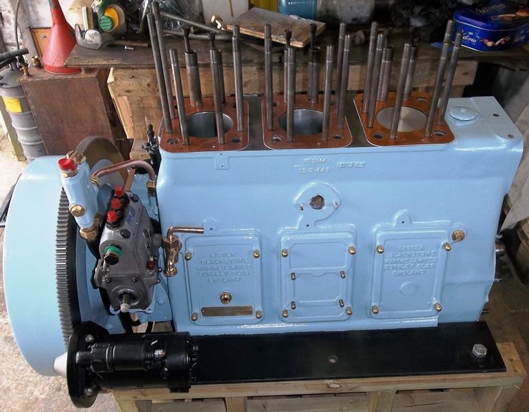 This engine produces 43.5hp @ 1500rpm, This engine is a genuine marine unit and was complete with the orignal lister fitted Blackstone 2:1 ratio gearbox and raised hand start. This engine has now undergone complete restoration which included conversion to electric start and the replacement of the mechanical Blackstone gearbox with a modern PRM 260 2:1 ratio gearbox.