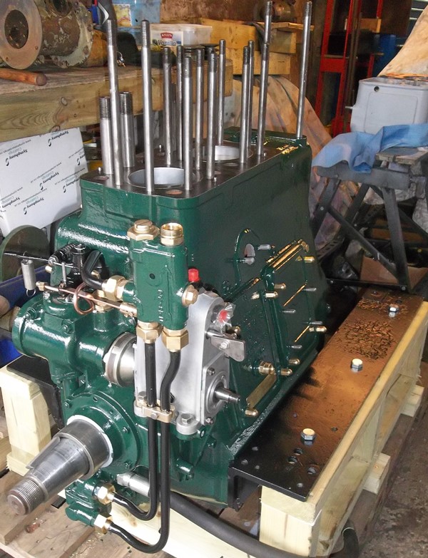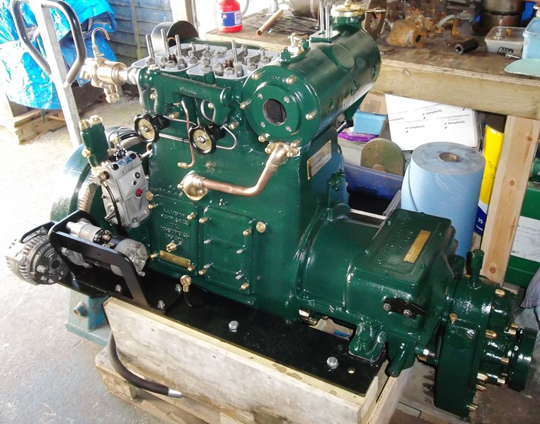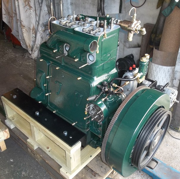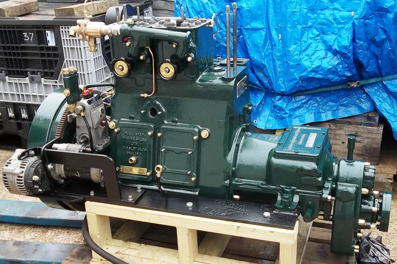 January 2014 saw the arrival wiith MPS of this 1952 built Lister JP2M. 21hp @ 1200rpm, fitted with its orignal lister Blackstone reduction gearbox. This engine had been sent to us for investigation and overhaul as it was suffering with overheating, excessive smoke and vibration while under load. It was fully stripped and rebuilt finding very incorrect injection timing, water damaged crankshaft journals, one cracked cylinder head and an incorrectly plumbed water system along the way. The engine was completed to the usual MPS spec and is now back with its owner.