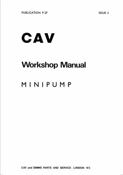 This workshop manual is for use with CAV Minipump type injector pumps and covers overhaul and adjustment.