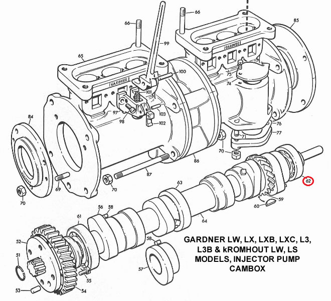 Ball journal bearing used on Gardner LW, LX, LXB, LXC, L3, L3B and Kromhout LW & LS models on the Injector pump cambox camshaft at the governor end.