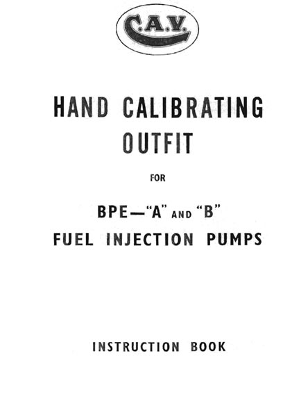 This manual is for use with CAV BPE type multi cylinder injection pump hand calibration equipment for size A and B pumps. Covering the use of the hand calibration equipment and the principles behind calibration of BPE type inline injection pumps.