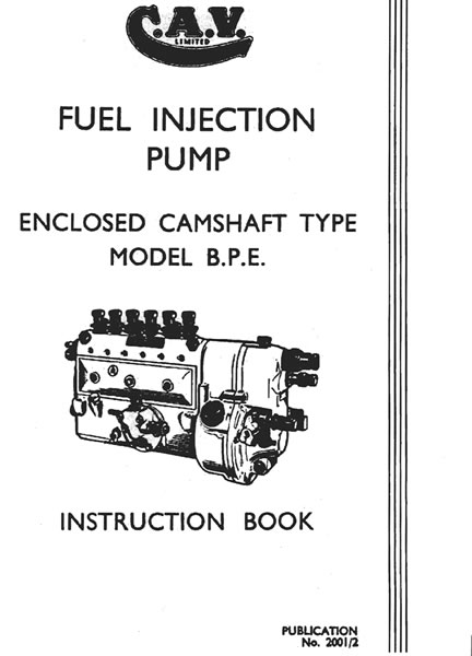 This manual is for use with CAV BPE type multi cylinder size A and B injection pumps. Covering the operation, maintenance, overhaul and fault diagnosis.