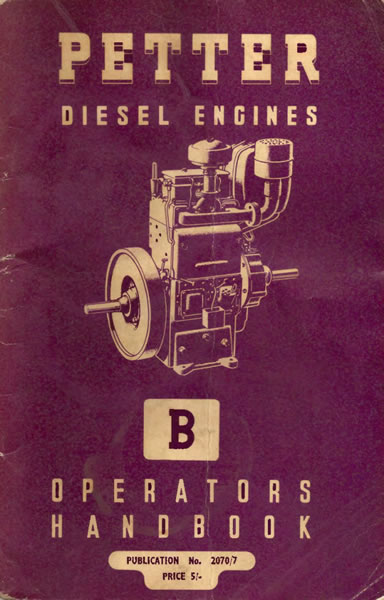 This manual covers the Petter B Series engines. This version of the manual is ideal for owners of the JP marine engines fitted with ram type water pump. This manual covers the Operation, Maintenance, Overhaul, Installation and Spare parts.