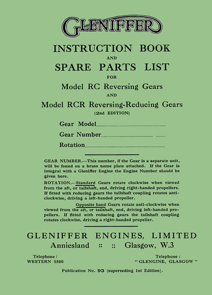 This manual covers the Gleniffer RC & RCR marine gearboxes as fitted to DC series engines from 3 to 8 Cylinder . This manual covers the Operation, General Maintenance and spare parts.