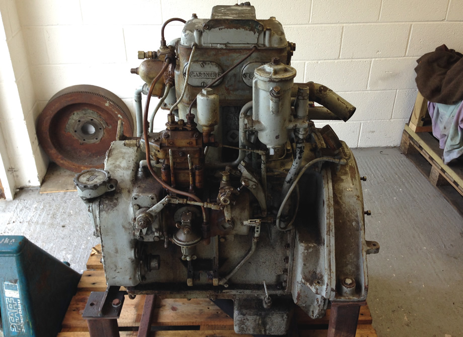 With any engines that have joined the "for restoration" queue we dismantle the engine to its component parts and immediately examine all the principal parts. The crankshaft and bearings will be sent off to our preferred specialist who will check against the original specifications and make the decision if regrinding or polishing is necessary. New shells, or on white metal bearing engines, re-metalling using virgin white metal and line boring follows. We pull all the cylinder liners out and check the block internals for corrosion, which is especially important for engines that have been used in salt water conditions. The cylinder liners, pistons etc are checked against the manufacturer’s data and replaced as necessary. All the fuel gear goes for reconditioning, as does the water pump and starter motor. The heads are stripped for valve and guide refurbishment as a matter of course. On Gardner and Kromhout models the cam box assembly is subject to a detailed strip and rebuild in every case. All roller, ball bearings and all lip seals are routinely replaced. On completion of any machining processes the components are subject to another intensive cleaning regime to ensure no debris is left behind with all oil ways cleaned and blown out. Every threaded hole in the engine is cleaned using the correct taps. All nuts and bolts are cleaned or replaced depending on condition. Some components are sent for grit or shell blasting. Throughout all of this work we again check each part for defects that may not have been apparent on initial inspection.
