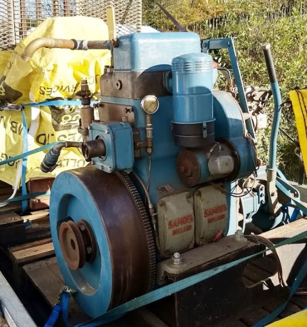 Samofa 2S108 Marine. 30hp @ 1500rpm. Although a running engine when purchased by the owner this engine had been sat for some years, because of this the engine was with us for strip, inspection and overhaul. however, a change of plans for the owner (second hand boat instead of a new one) means this beautiful engine is now available. Completed with 12v electric start, 12v 175 Amp Iskra alternator, Gear driven Jabsco coolant pump, modern fuel filter and its original 2:1 reduction gearbox this engine type makes an ideal power plant for a tradition narrowboat. Sharing many components with its cousin the Gardner 2LW it is a similar engine but without the premium the 2LW's cost.