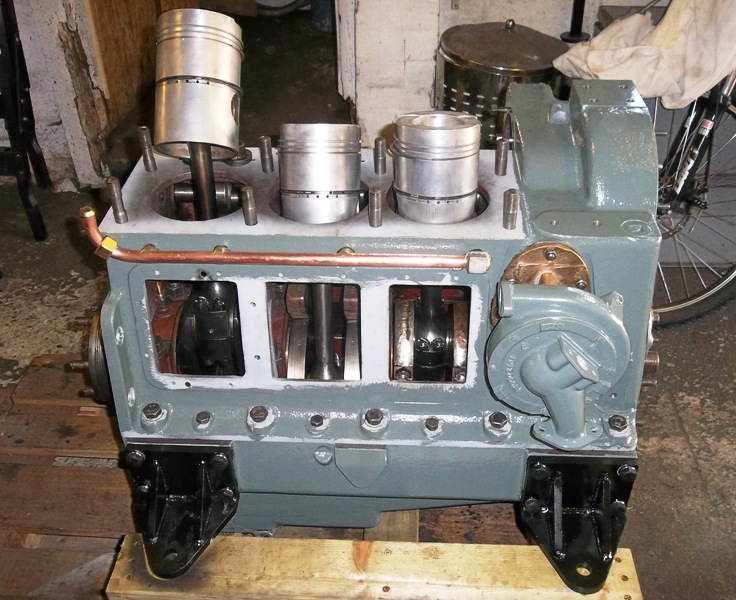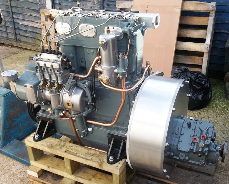 Kromhout-Gardner 3LW (LS). 36hp @1200rpm, this engine type was built under licence from L Gardner & Sons by Kromhout Motoren Fabriek in Holland. This particular engine is a Gardner 3LW with the added feature that it is a true ships diesel engine (scheepsdiesel) with split crankcase specifically designed for marine use to allow all maintenance to be carried out from above. Similar crankcase design to that of the Gardner L2 series engines. This engine was completed with 24 volt electric start and New PRM 260, 2:1 ratio gearbox.