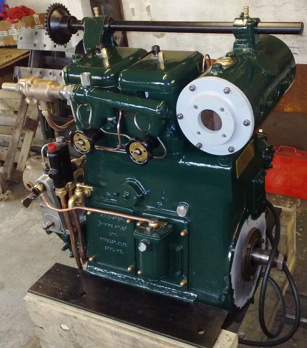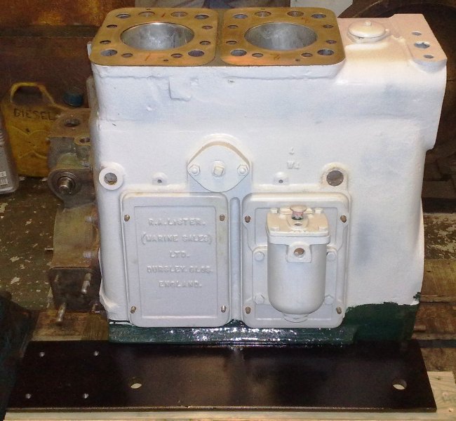 Lister JP2M. 23hp @ 1200rpm, This engine is a early example of a genuine marine unit. This engine on arrival with MPS was fitted with the orignal lister Blackstone 3:1 ratio gearbox and was raised hand start only. It was restored with a conversion to PRM 260 2:1 gearbox and electric start while still retaining the raised hand start.