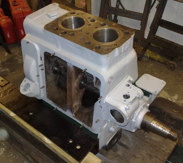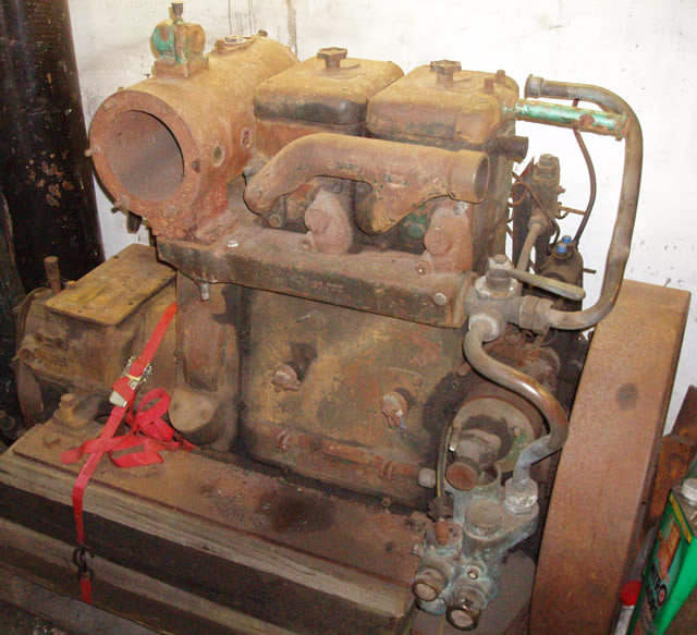 Lister JP2M. 21hp @ 1200rpm. This engine is a genuine marine unit with raised hand start and Blackstone gearbox. This engine was originally hand start only and was completed by Marine Power Services with 24v starter motor and new starter ring gear. This engine was also converted to later Lister JK type oil fed rockers.