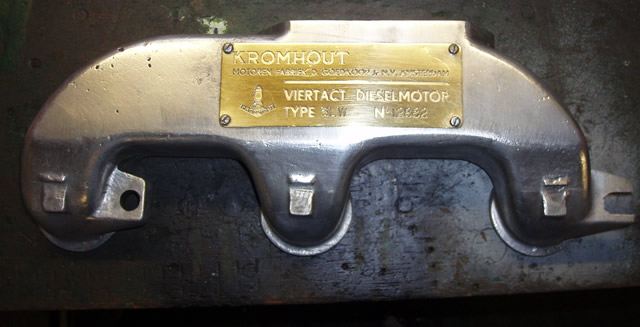 This engine is a late example of the Gardner LW series engines that were built under licence from L.Gardner & Sons by Kromhout Motoren Fabriek in Holland. This example is a three cylinder version producing 53hp @ 1700 rpm. This engine was completed with twin alternators (12v 120amp and 24v 80amp) and PRM 260 2:1 ratio gearbox.