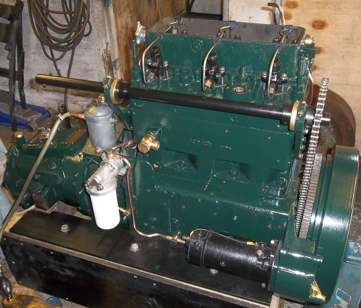 This Petter B3 marine engine arrived with MPS when the owners plans for fitting into his boat never happened, The B3 is one of the very best of the Petter designs.36hp @ 1800 rpm. This engine is fitted with 12 volt electric start and 2:1 ratio Parsons gearbox. Already in good working order it was put through our workshop for general repair and servicing, including the refitting of an original raised hand start and new marine mounting feet. The engine was finished off with thermostatic temperature control and 120amp 12 volt alternator and supplied to re-power a narrowboat which the existing engine had failed in.