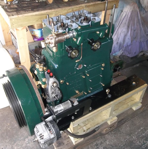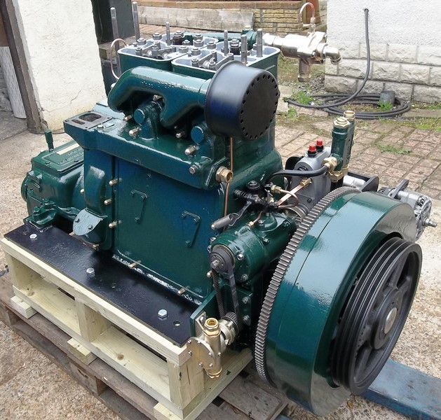 January 2014 saw the arrival wiith MPS of this 1952 built Lister JP2M. 21hp @ 1200rpm, fitted with its orignal lister Blackstone reduction gearbox. This engine had been sent to us for investigation and overhaul as it was suffering with overheating, excessive smoke and vibration while under load. It was fully stripped and rebuilt finding very incorrect injection timing, water damaged crankshaft journals, one cracked cylinder head and an incorrectly plumbed water system along the way. The engine was completed to the usual MPS spec and is now back with its owner.
